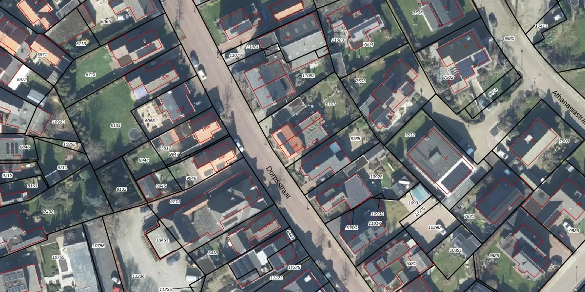 Gebruik de zoekbalk of klik op een perceel voor informatie over de adressen binnen dit perceel.