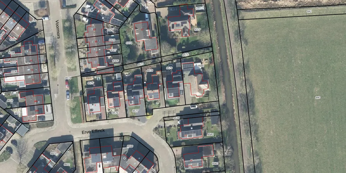 Het perceel waarop Erve Effinck 9 staat heeft een oppervlakte van 310 m². Dit is een groot perceel. De perceeloppervlakte wordt geregistreerd door het Kadaster. Gedetailleerde informatie over de maten van dit perceel kunt u vinden in het rapport Kadastrale kaart met maatvoering van Erve Effinck 9.