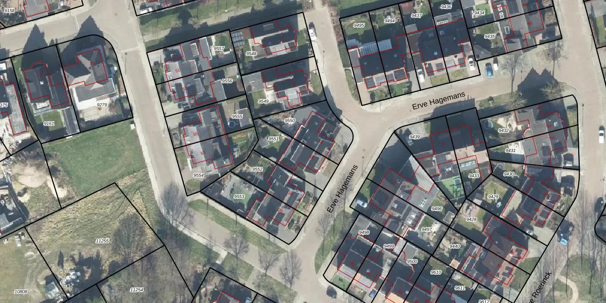 Het perceel waarop Erve Hagemans 16 staat heeft een oppervlakte van 288 m². Dit is een middelgroot perceel. De perceeloppervlakte wordt geregistreerd door het Kadaster. Gedetailleerde informatie over de maten van dit perceel kunt u vinden in het rapport Kadastrale kaart met maatvoering van Erve Hagemans 16.