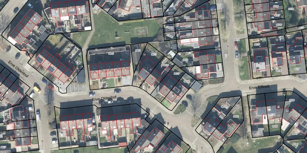 Gebruik de zoekbalk of klik op een perceel voor informatie over de adressen binnen dit perceel.