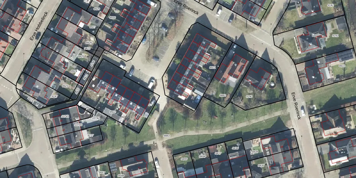 Het perceel waarop Erve Roerinck 30 staat heeft een oppervlakte van 1077 m². Dit is een zeer groot perceel. De perceeloppervlakte wordt geregistreerd door het Kadaster. Gedetailleerde informatie over de maten van dit perceel kunt u vinden in het rapport Kadastrale kaart met maatvoering van Erve Roerinck 30.