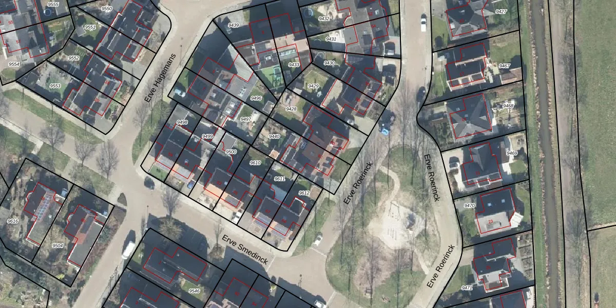 Gebruik de zoekbalk of klik op een perceel voor informatie over de adressen binnen dit perceel.