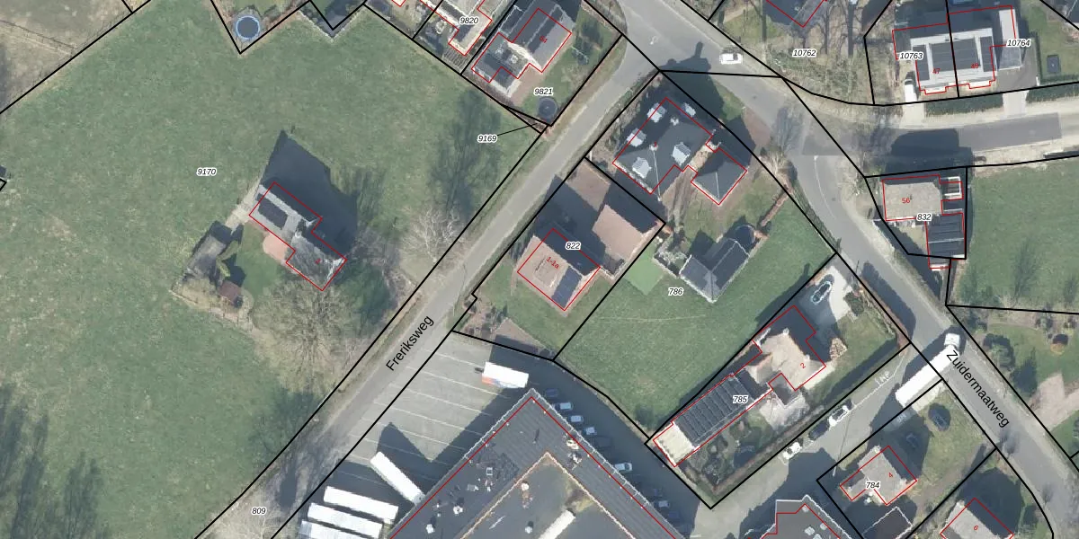 Het perceel waarop Freriksweg 1-a staat heeft een oppervlakte van 710 m². Dit is een groot perceel. De perceeloppervlakte wordt geregistreerd door het Kadaster. Gedetailleerde informatie over de maten van dit perceel kunt u vinden in het rapport Kadastrale kaart met maatvoering van Freriksweg 1-a.