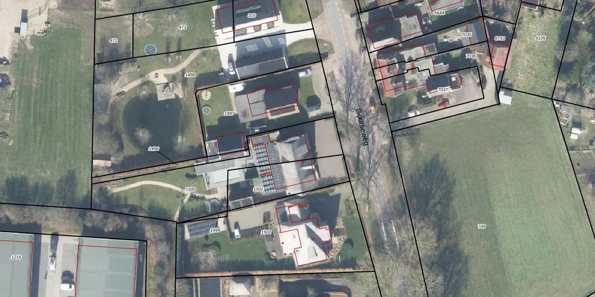 Het perceel waarop Goorseweg 6 staat heeft een oppervlakte van 1075 m². Dit is een zeer groot perceel. De perceeloppervlakte wordt geregistreerd door het Kadaster. Gedetailleerde informatie over de maten van dit perceel kunt u vinden in het rapport Kadastrale kaart met maatvoering van Goorseweg 6.