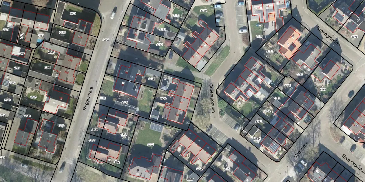 Het perceel waarop Groengronden 32 staat heeft een oppervlakte van 610 m². Dit is een groot perceel. De perceeloppervlakte wordt geregistreerd door het Kadaster. Gedetailleerde informatie over de maten van dit perceel kunt u vinden in het rapport Kadastrale kaart met maatvoering van Groengronden 32.
