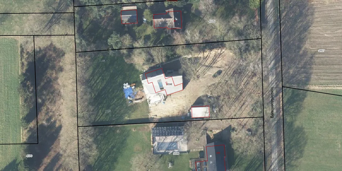 Het perceel waarop Heidebloemweg 10-a staat heeft een oppervlakte van 4827 m². Dit is een zeer groot perceel. De perceeloppervlakte wordt geregistreerd door het Kadaster. Gedetailleerde informatie over de maten van dit perceel kunt u vinden in het rapport Kadastrale kaart met maatvoering van Heidebloemweg 10-a.