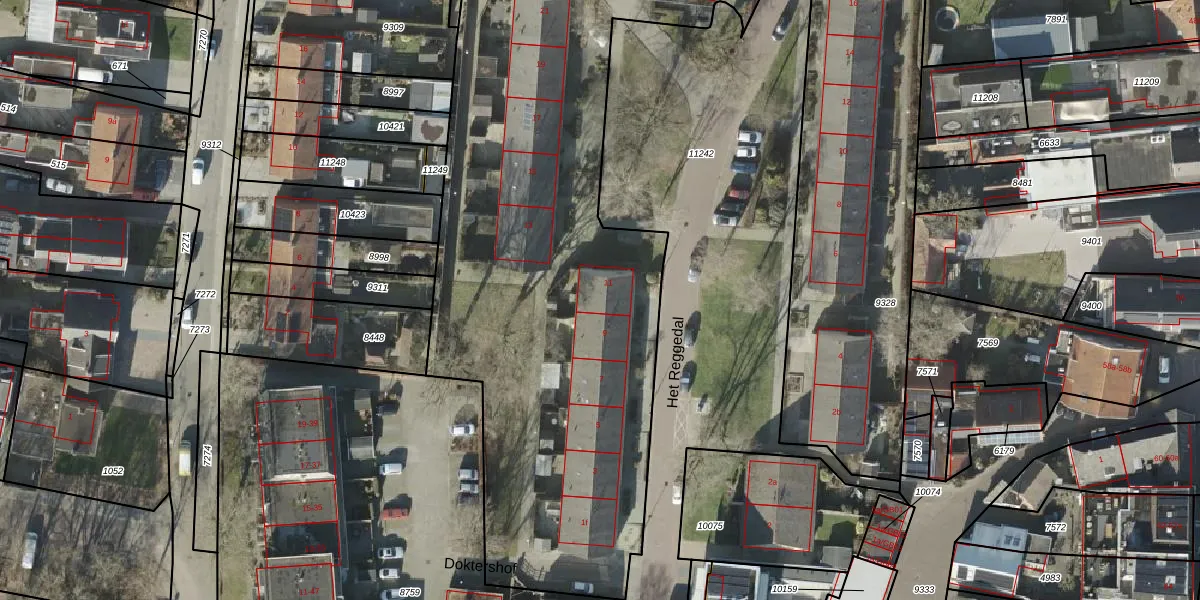 Het perceel waarop Het Reggedal 11 staat heeft een oppervlakte van 1,0 ha. Dit is een zeer groot perceel. De perceeloppervlakte wordt geregistreerd door het Kadaster. Gedetailleerde informatie over de maten van dit perceel kunt u vinden in het rapport Kadastrale kaart met maatvoering van Het Reggedal 11.