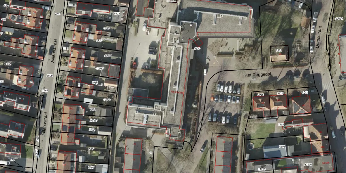 Het perceel waarop Het Reggedal 21-b staat heeft een oppervlakte van 1,0 ha. Dit is een zeer groot perceel. De perceeloppervlakte wordt geregistreerd door het Kadaster. Gedetailleerde informatie over de maten van dit perceel kunt u vinden in het rapport Kadastrale kaart met maatvoering van Het Reggedal 21-b.