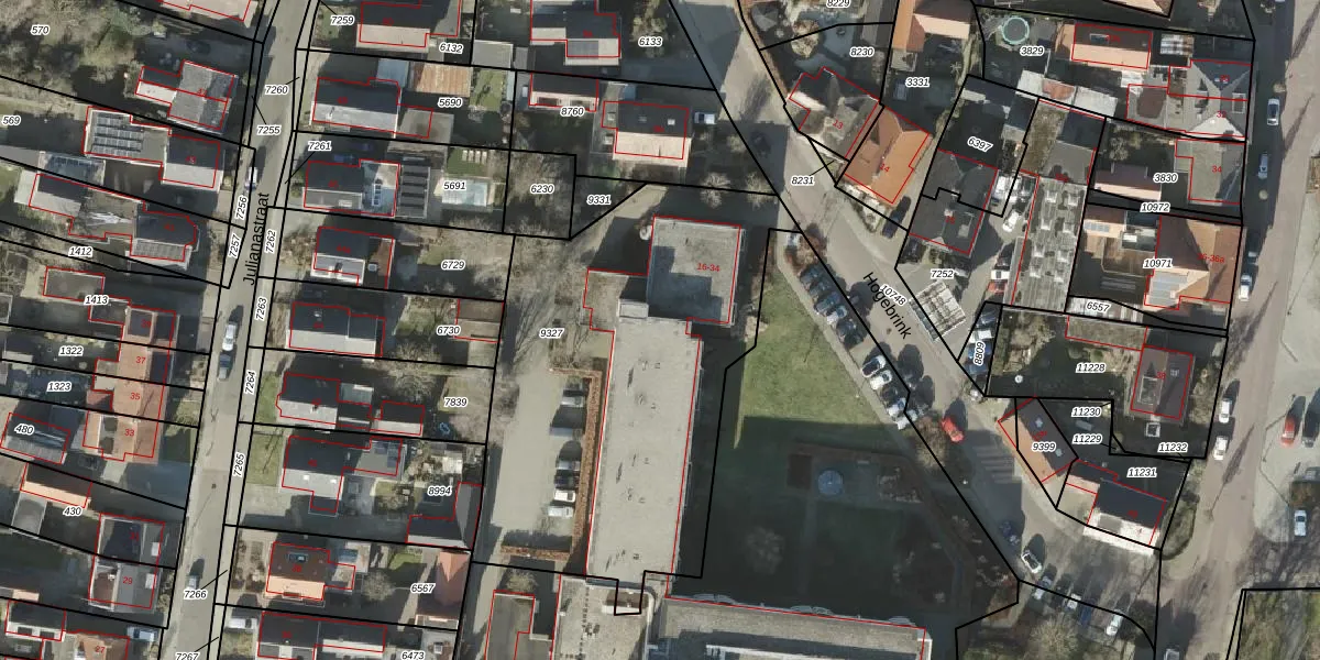 Het perceel waarop Hogebrink 27 staat heeft een oppervlakte van 2065 m². Dit is een zeer groot perceel. De perceeloppervlakte wordt geregistreerd door het Kadaster. Gedetailleerde informatie over de maten van dit perceel kunt u vinden in het rapport Kadastrale kaart met maatvoering van Hogebrink 27.