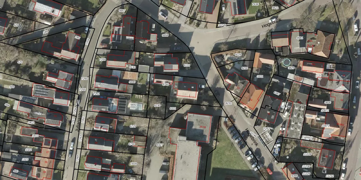 Gebruik de zoekbalk of klik op een perceel voor informatie over de adressen binnen dit perceel.