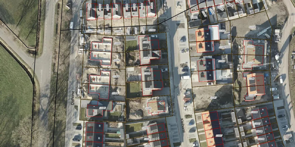 Het perceel waarop Kleihorst 39 staat heeft een oppervlakte van 304 m². Dit is een groot perceel. De perceeloppervlakte wordt geregistreerd door het Kadaster. Gedetailleerde informatie over de maten van dit perceel kunt u vinden in het rapport Kadastrale kaart met maatvoering van Kleihorst 39.