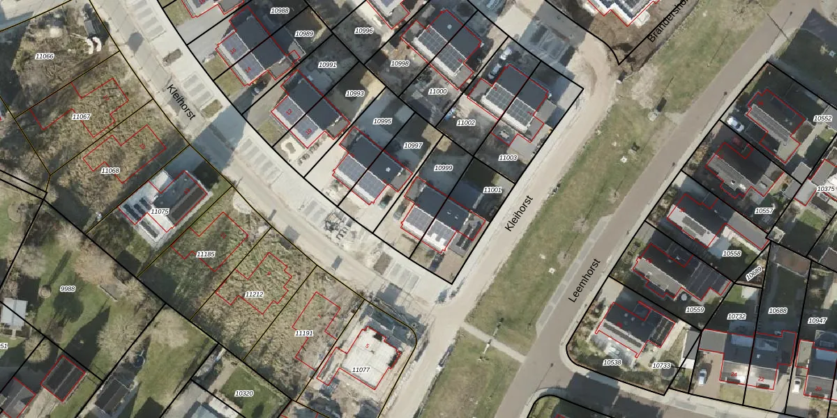 Gebruik de zoekbalk of klik op een perceel voor informatie over de adressen binnen dit perceel.