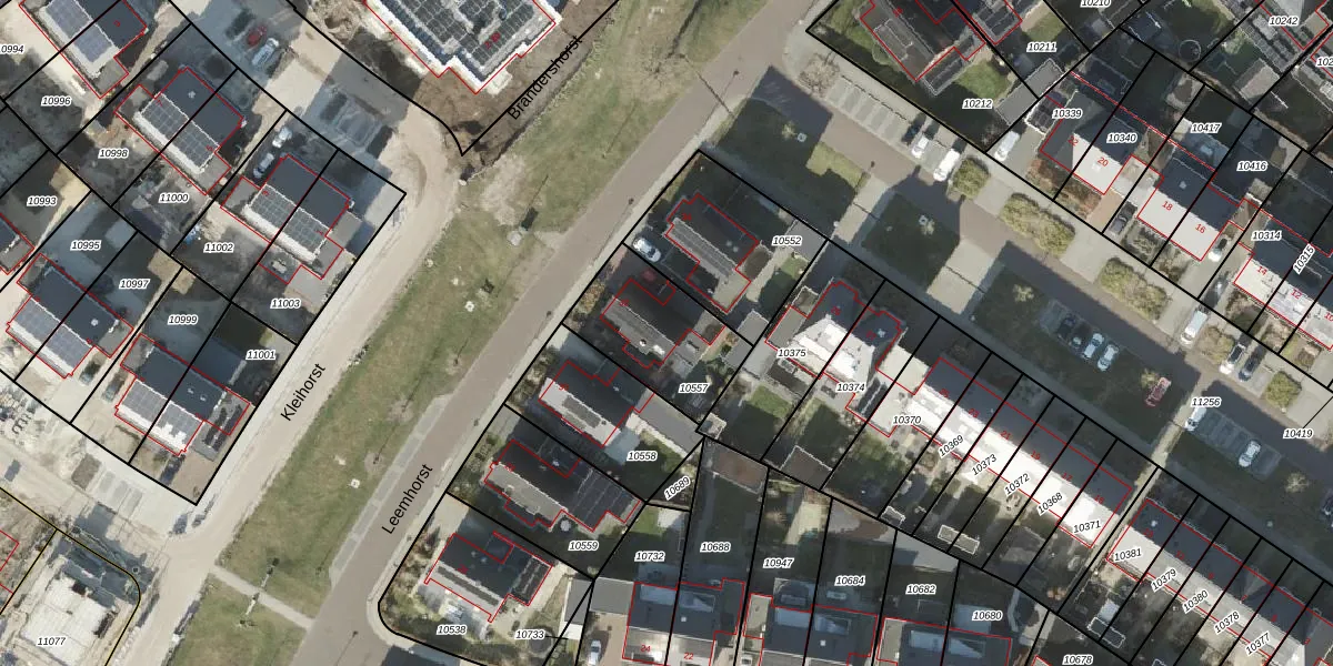 Het perceel waarop Leemhorst 32 staat heeft een oppervlakte van 377 m². Dit is een groot perceel. De perceeloppervlakte wordt geregistreerd door het Kadaster. Gedetailleerde informatie over de maten van dit perceel kunt u vinden in het rapport Kadastrale kaart met maatvoering van Leemhorst 32.