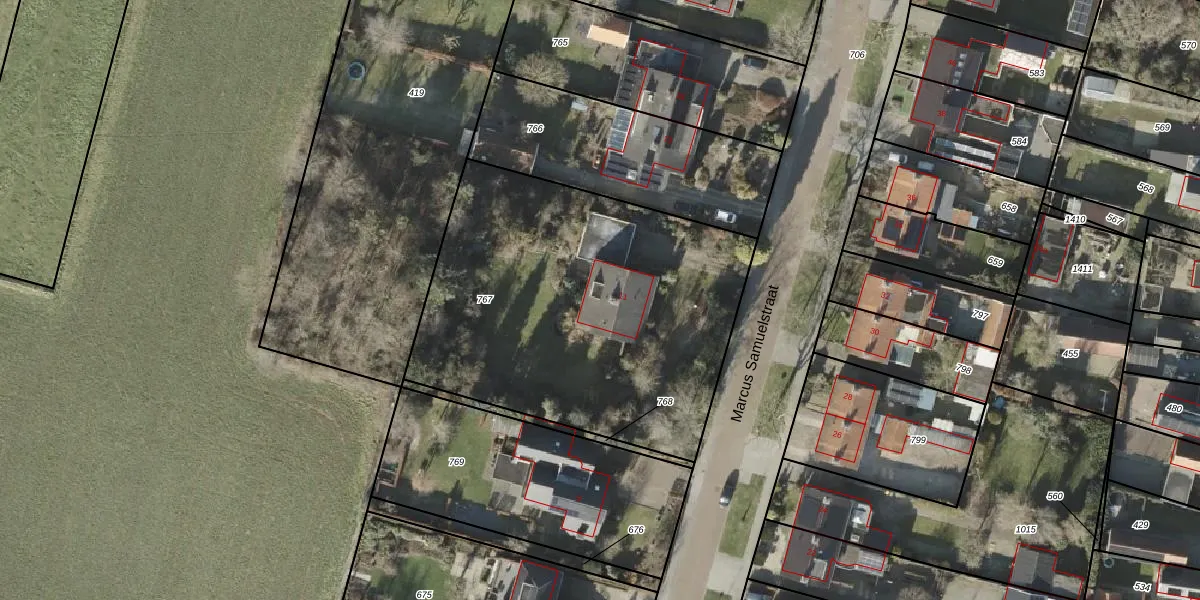 Marcus Samuelstraat 11 is gelegen op kadastraal perceel WDN02L767. Deze kadastrale aanduiding is uniek en wordt gebruikt door het Kadaster om eigendomsrechten en andere zakelijke rechten vast te leggen. Het perceel maakt onderdeel uit van de kadastrale gemeente Wierden.