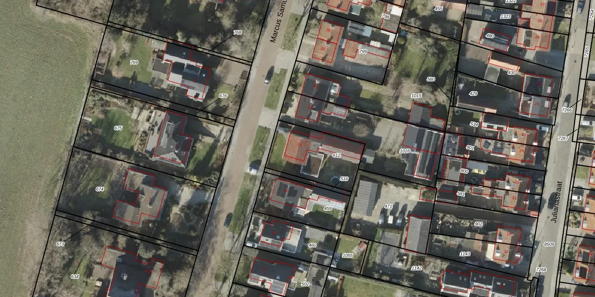 Het perceel waarop Marcus Samuelstraat 18 staat heeft een oppervlakte van 496 m². Dit is een groot perceel. De perceeloppervlakte wordt geregistreerd door het Kadaster. Gedetailleerde informatie over de maten van dit perceel kunt u vinden in het rapport Kadastrale kaart met maatvoering van Marcus Samuelstraat 18.