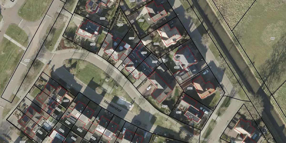 Het perceel waarop Meestershof 16 staat heeft een oppervlakte van 260 m². Dit is een middelgroot perceel. De perceeloppervlakte wordt geregistreerd door het Kadaster. Gedetailleerde informatie over de maten van dit perceel kunt u vinden in het rapport Kadastrale kaart met maatvoering van Meestershof 16.