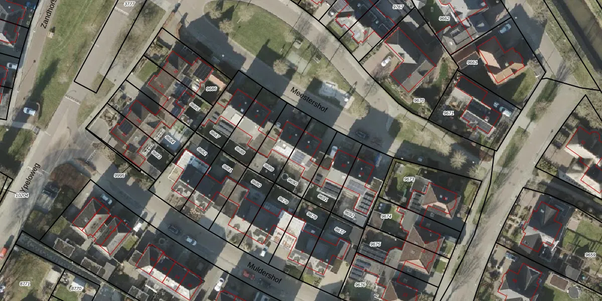 Het perceel waarop Meestershof 8 staat heeft een oppervlakte van 250 m². Dit is een middelgroot perceel. De perceeloppervlakte wordt geregistreerd door het Kadaster. Gedetailleerde informatie over de maten van dit perceel kunt u vinden in het rapport Kadastrale kaart met maatvoering van Meestershof 8.