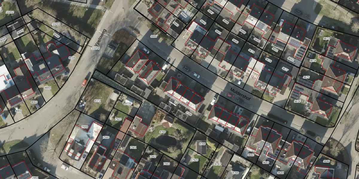 Het perceel waarop Muldershof 12 staat heeft een oppervlakte van 2000 m². Dit is een zeer groot perceel. De perceeloppervlakte wordt geregistreerd door het Kadaster. Gedetailleerde informatie over de maten van dit perceel kunt u vinden in het rapport Kadastrale kaart met maatvoering van Muldershof 12.