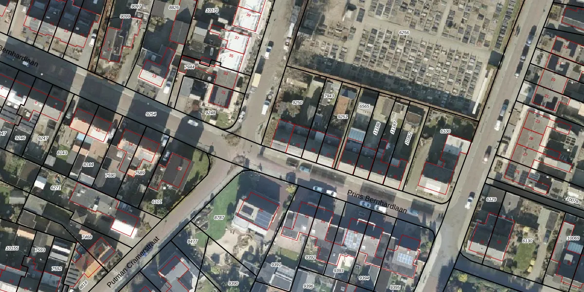 Het perceel waarop Prins Bernhardlaan 23 staat heeft een oppervlakte van 416 m². Dit is een groot perceel. De perceeloppervlakte wordt geregistreerd door het Kadaster. Gedetailleerde informatie over de maten van dit perceel kunt u vinden in het rapport Kadastrale kaart met maatvoering van Prins Bernhardlaan 23.