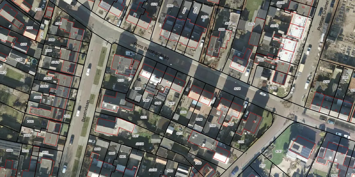 Gebruik de zoekbalk of klik op een perceel voor informatie over de adressen binnen dit perceel.