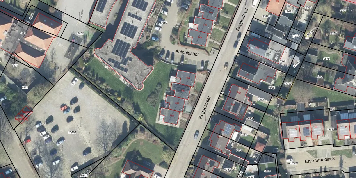 Het perceel waarop Reggestraat 156 staat heeft een oppervlakte van 6620 m². Dit is een zeer groot perceel. De perceeloppervlakte wordt geregistreerd door het Kadaster. Gedetailleerde informatie over de maten van dit perceel kunt u vinden in het rapport Kadastrale kaart met maatvoering van Reggestraat 156.