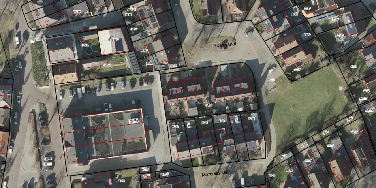 Het perceel waarop Roetershof 24 staat heeft een oppervlakte van 1245 m². Dit is een zeer groot perceel. De perceeloppervlakte wordt geregistreerd door het Kadaster. Gedetailleerde informatie over de maten van dit perceel kunt u vinden in het rapport Kadastrale kaart met maatvoering van Roetershof 24.