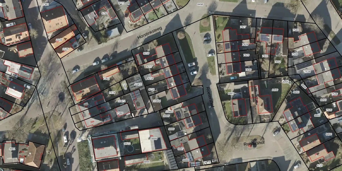 Gebruik de zoekbalk of klik op een perceel voor informatie over de adressen binnen dit perceel.