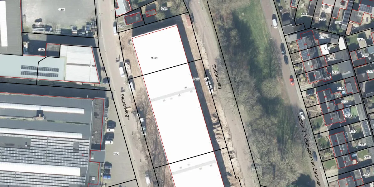 Het perceel waarop Stationsweg 9-o staat heeft een oppervlakte van 2017 m². Dit is een zeer groot perceel. De perceeloppervlakte wordt geregistreerd door het Kadaster. Gedetailleerde informatie over de maten van dit perceel kunt u vinden in het rapport Kadastrale kaart met maatvoering van Stationsweg 9-o.
