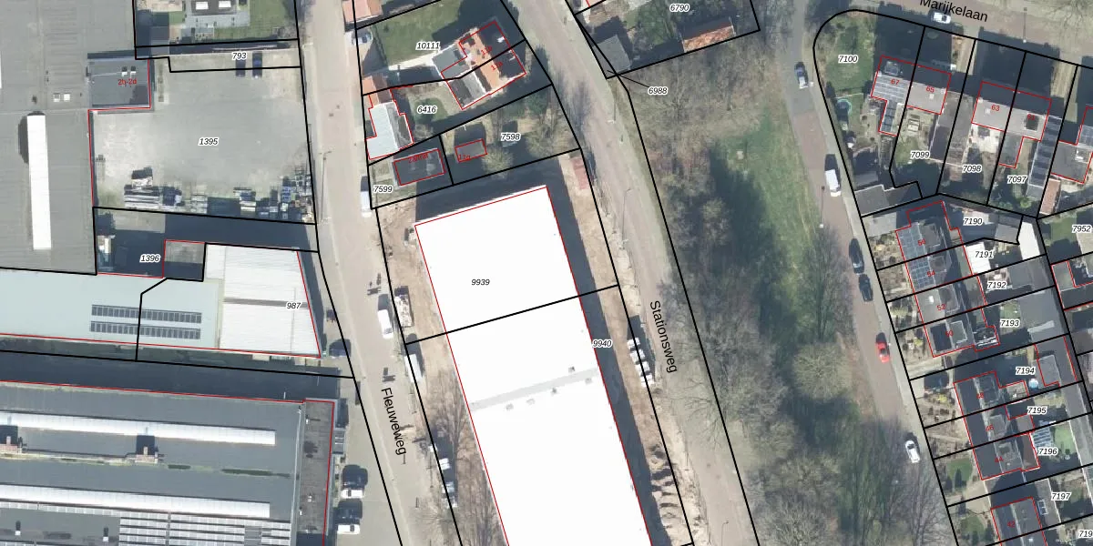 Het perceel waarop Stationsweg 9-s staat heeft een oppervlakte van 1037 m². Dit is een zeer groot perceel. De perceeloppervlakte wordt geregistreerd door het Kadaster. Gedetailleerde informatie over de maten van dit perceel kunt u vinden in het rapport Kadastrale kaart met maatvoering van Stationsweg 9-s.
