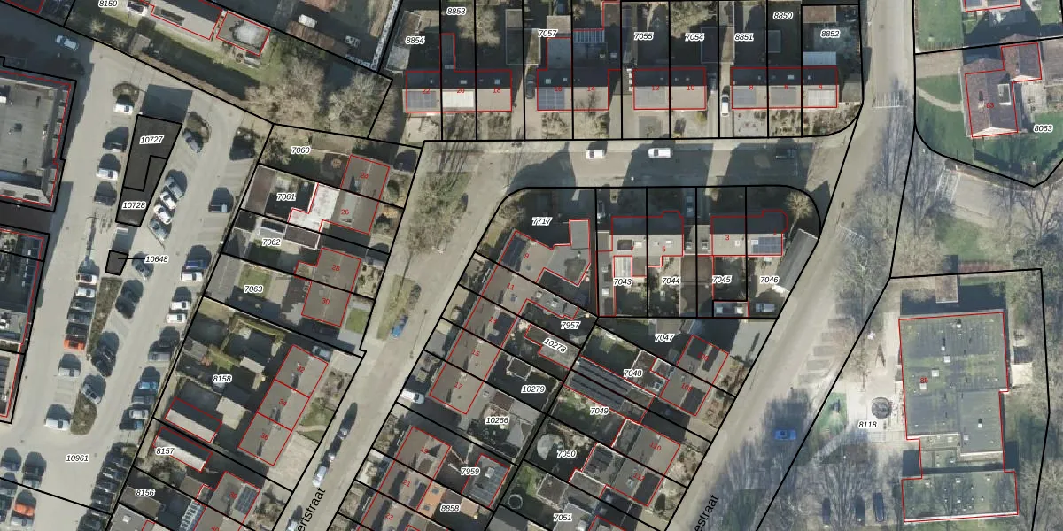 Gebruik de zoekbalk of klik op een perceel voor informatie over de adressen binnen dit perceel.