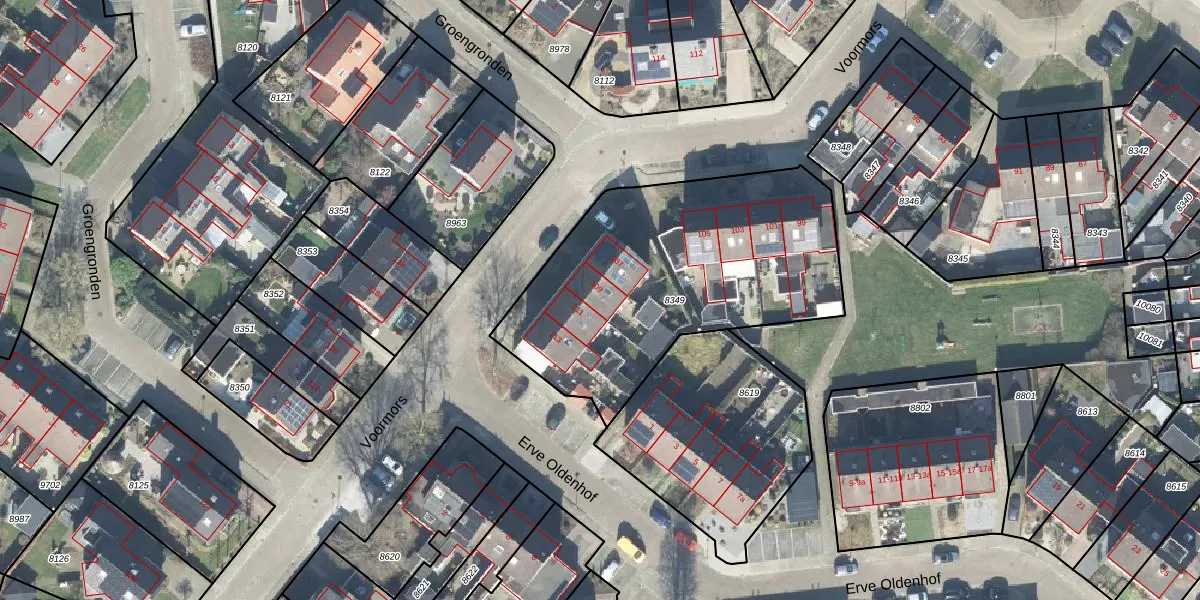 Het perceel waarop Voormors 109 staat heeft een oppervlakte van 1430 m². Dit is een zeer groot perceel. De perceeloppervlakte wordt geregistreerd door het Kadaster. Gedetailleerde informatie over de maten van dit perceel kunt u vinden in het rapport Kadastrale kaart met maatvoering van Voormors 109.