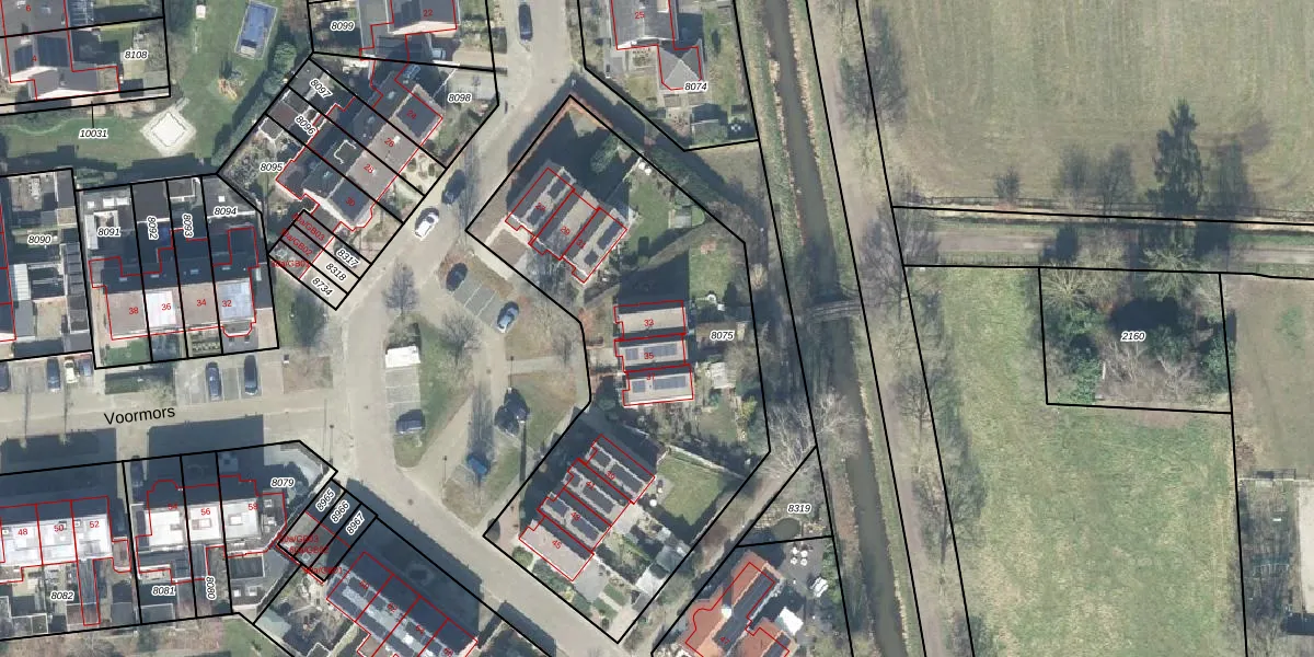 Het perceel waarop Voormors 33 staat heeft een oppervlakte van 2132 m². Dit is een zeer groot perceel. De perceeloppervlakte wordt geregistreerd door het Kadaster. Gedetailleerde informatie over de maten van dit perceel kunt u vinden in het rapport Kadastrale kaart met maatvoering van Voormors 33.