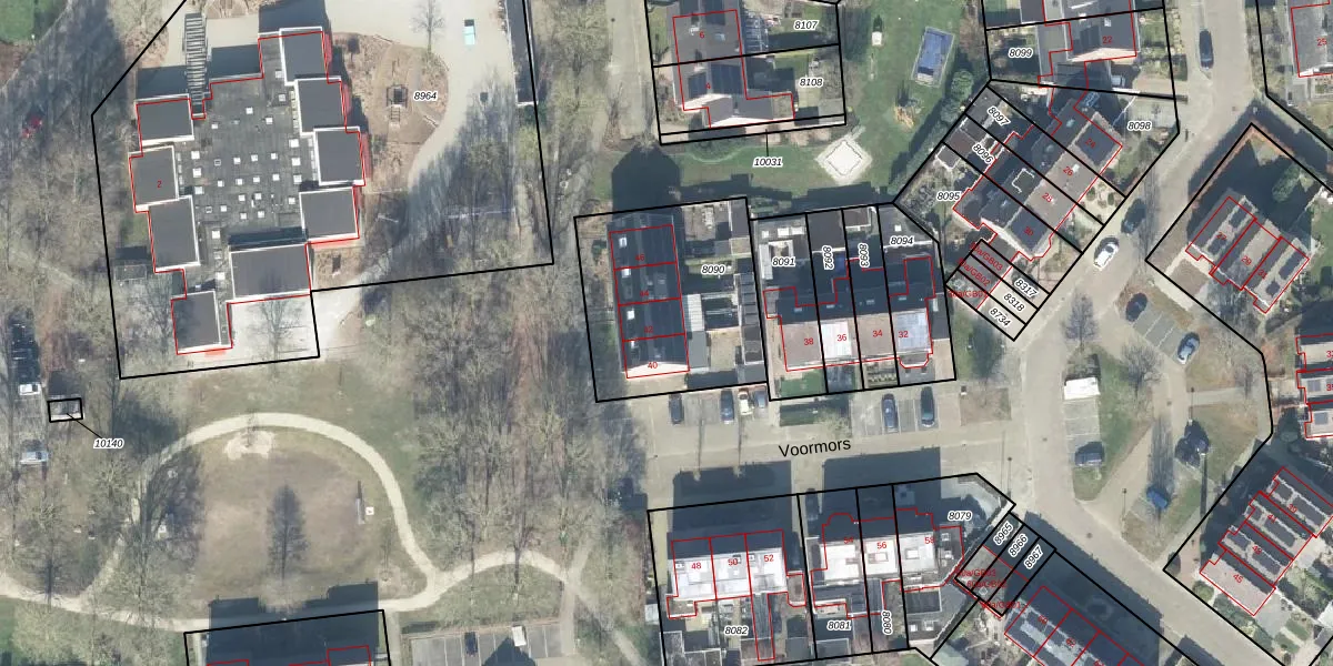 Het perceel waarop Voormors 42 staat heeft een oppervlakte van 722 m². Dit is een groot perceel. De perceeloppervlakte wordt geregistreerd door het Kadaster. Gedetailleerde informatie over de maten van dit perceel kunt u vinden in het rapport Kadastrale kaart met maatvoering van Voormors 42.