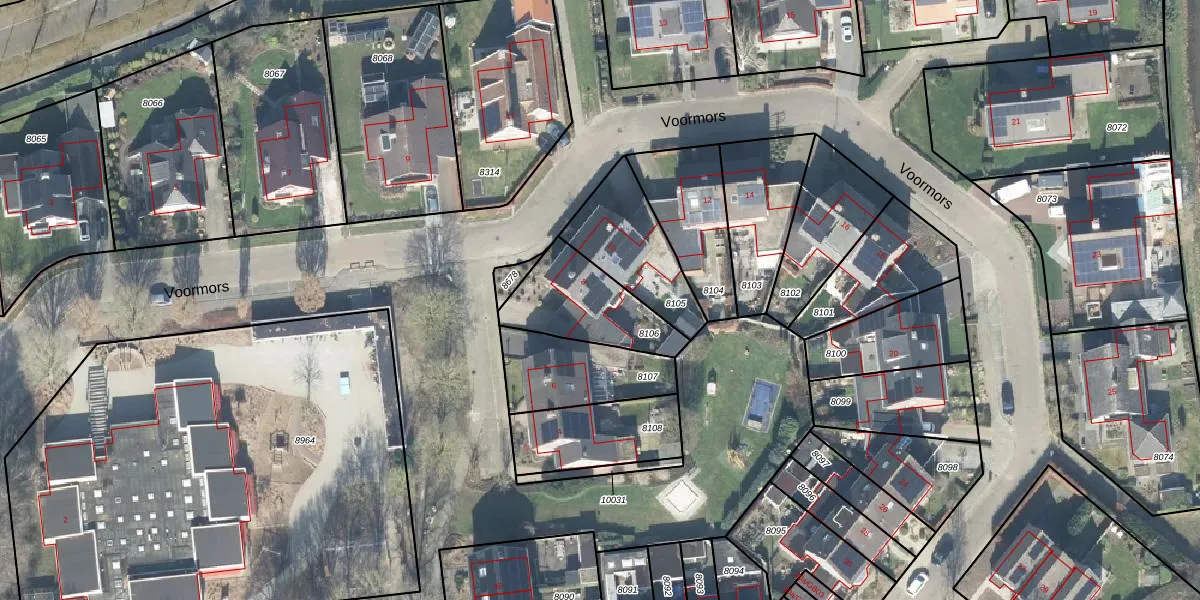 Het perceel waarop Voormors 8 staat heeft een oppervlakte van 311 m². Dit is een groot perceel. De perceeloppervlakte wordt geregistreerd door het Kadaster. Gedetailleerde informatie over de maten van dit perceel kunt u vinden in het rapport Kadastrale kaart met maatvoering van Voormors 8.