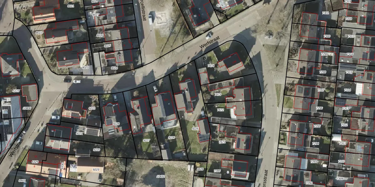 Het perceel waarop Werfstraat 14 staat heeft een oppervlakte van 735 m². Dit is een groot perceel. De perceeloppervlakte wordt geregistreerd door het Kadaster. Gedetailleerde informatie over de maten van dit perceel kunt u vinden in het rapport Kadastrale kaart met maatvoering van Werfstraat 14.