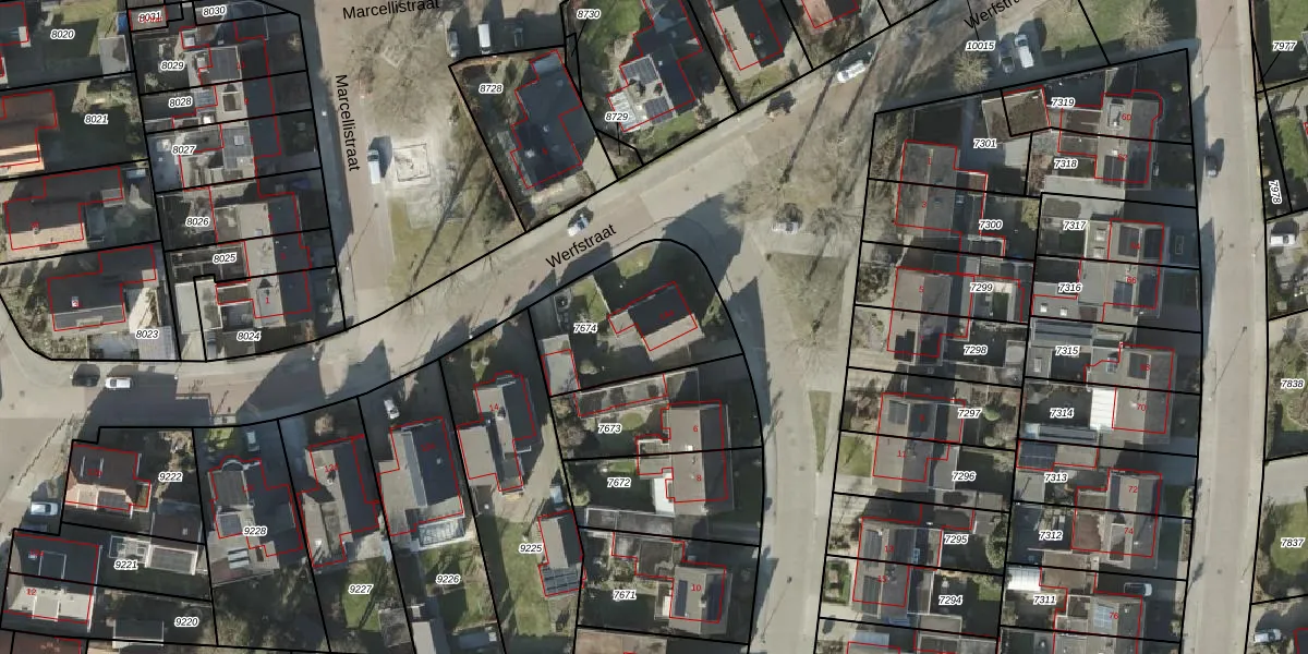 Het perceel waarop Werfstraat 14-a staat heeft een oppervlakte van 506 m². Dit is een groot perceel. De perceeloppervlakte wordt geregistreerd door het Kadaster. Gedetailleerde informatie over de maten van dit perceel kunt u vinden in het rapport Kadastrale kaart met maatvoering van Werfstraat 14-a.