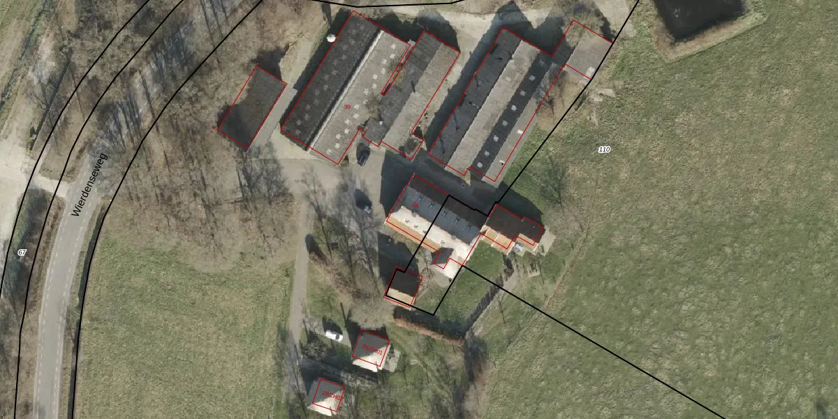 Het perceel waarop Wierdenseweg 28 staat heeft een oppervlakte van 2,4 ha. Dit is een zeer groot perceel. De perceeloppervlakte wordt geregistreerd door het Kadaster. Gedetailleerde informatie over de maten van dit perceel kunt u vinden in het rapport Kadastrale kaart met maatvoering van Wierdenseweg 28.