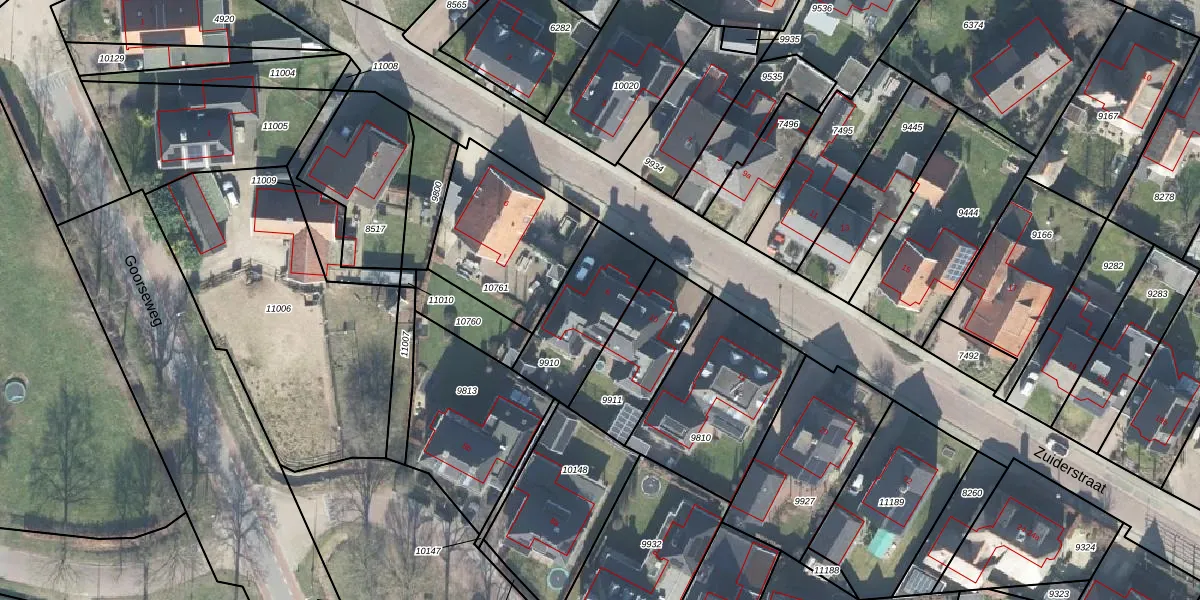 Gebruik de zoekbalk of klik op een perceel voor informatie over de adressen binnen dit perceel.