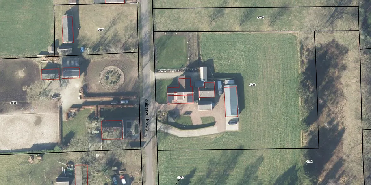 Zuiderveldsweg 14 is gelegen op kadastraal perceel WDN02D4288. Deze kadastrale aanduiding is uniek en wordt gebruikt door het Kadaster om eigendomsrechten en andere zakelijke rechten vast te leggen. Het perceel maakt onderdeel uit van de kadastrale gemeente Wierden.