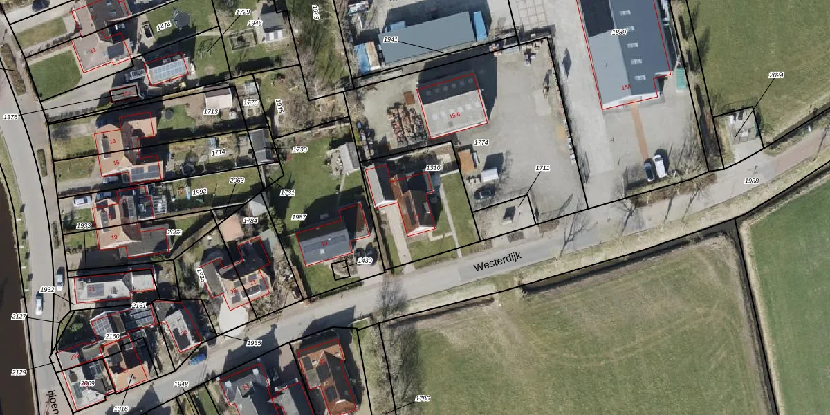 Het perceel waarop Westerdijk 17 staat heeft een oppervlakte van 580 m². Dit is een groot perceel. De perceeloppervlakte wordt geregistreerd door het Kadaster. Gedetailleerde informatie over de maten van dit perceel kunt u vinden in het rapport Kadastrale kaart met maatvoering van Westerdijk 17.