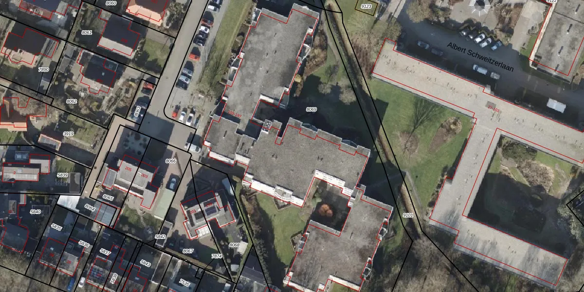 Het perceel waarop Albert Schweitzerlaan 155 staat heeft een oppervlakte van 6080 m². Dit is een zeer groot perceel. De perceeloppervlakte wordt geregistreerd door het Kadaster. Gedetailleerde informatie over de maten van dit perceel kunt u vinden in het rapport Kadastrale kaart met maatvoering van Albert Schweitzerlaan 155.