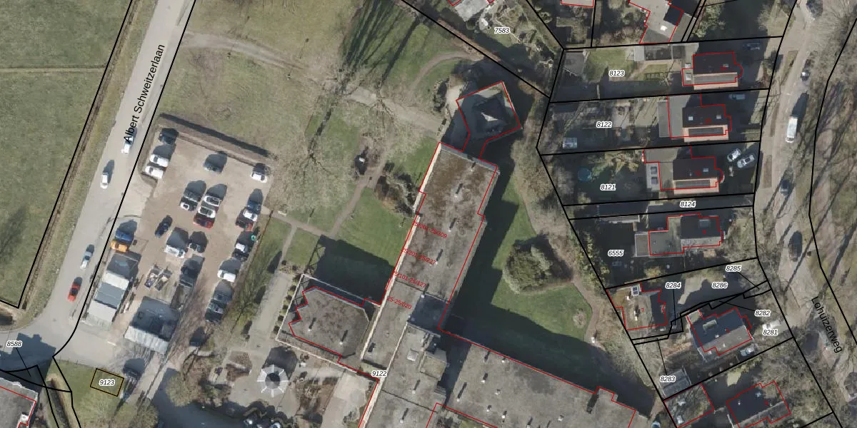 Het perceel waarop Albert Schweitzerlaan 25-015 staat heeft een oppervlakte van 1,9 ha. Dit is een zeer groot perceel. De perceeloppervlakte wordt geregistreerd door het Kadaster. Gedetailleerde informatie over de maten van dit perceel kunt u vinden in het rapport Kadastrale kaart met maatvoering van Albert Schweitzerlaan 25-015.