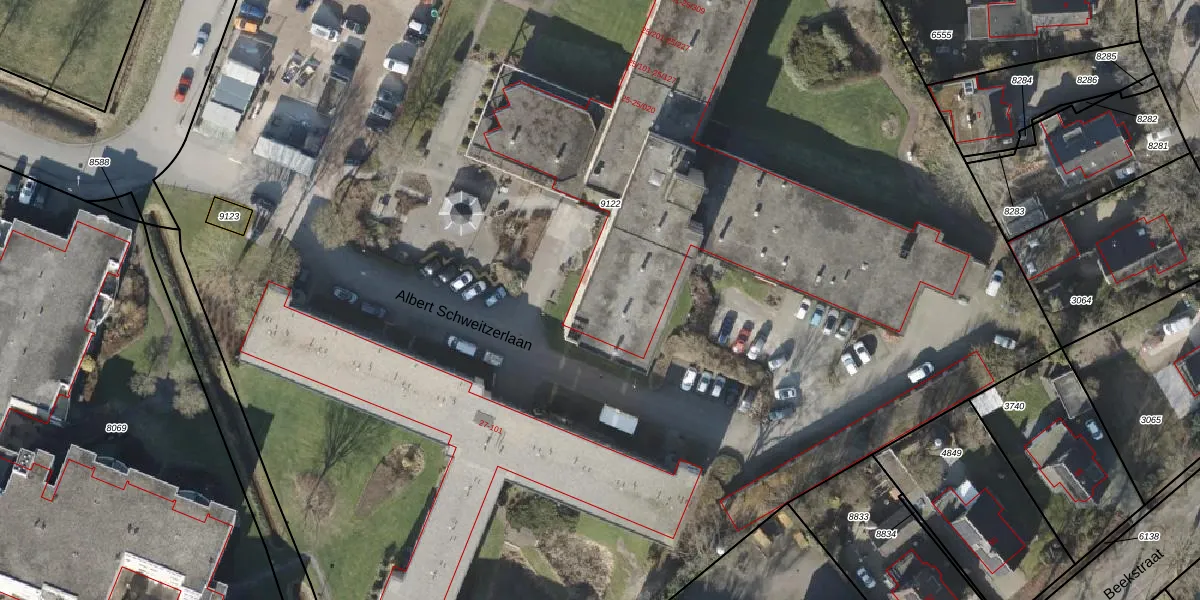 Het perceel waarop Albert Schweitzerlaan 25-104 staat heeft een oppervlakte van 1,9 ha. Dit is een zeer groot perceel. De perceeloppervlakte wordt geregistreerd door het Kadaster. Gedetailleerde informatie over de maten van dit perceel kunt u vinden in het rapport Kadastrale kaart met maatvoering van Albert Schweitzerlaan 25-104.