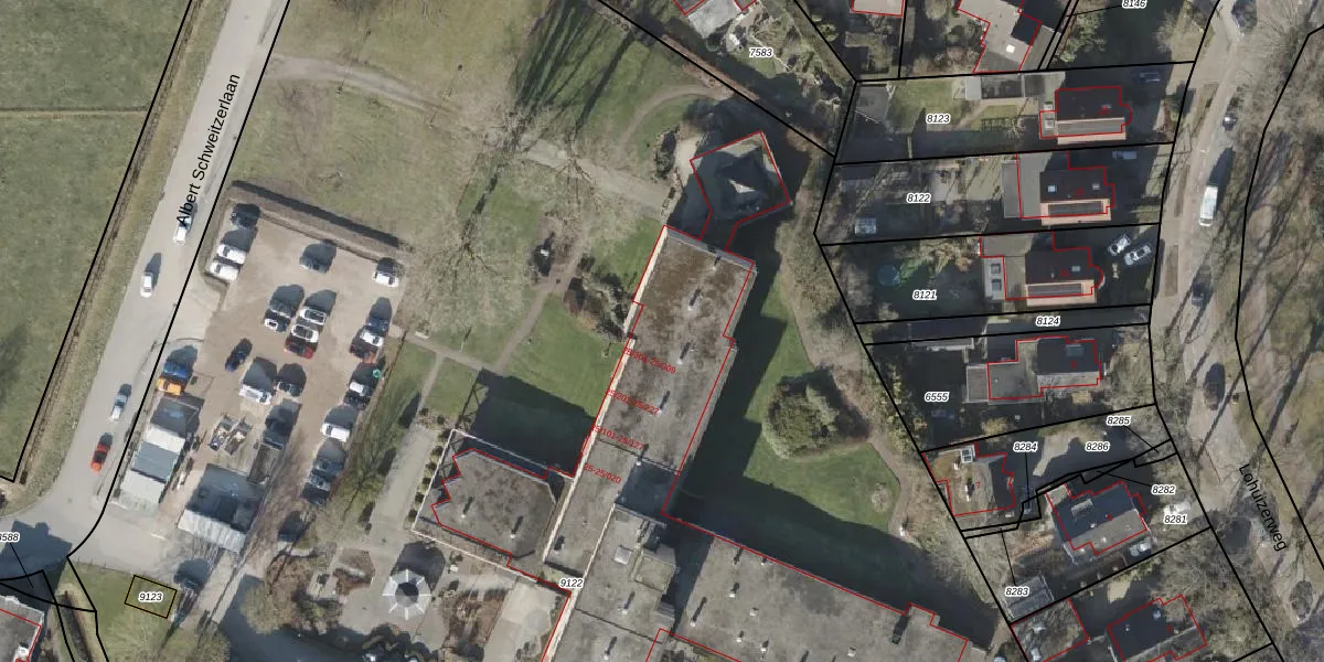 Het perceel waarop Albert Schweitzerlaan 25-122 staat heeft een oppervlakte van 1,9 ha. Dit is een zeer groot perceel. De perceeloppervlakte wordt geregistreerd door het Kadaster. Gedetailleerde informatie over de maten van dit perceel kunt u vinden in het rapport Kadastrale kaart met maatvoering van Albert Schweitzerlaan 25-122.