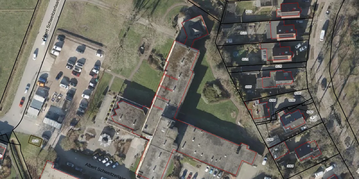 Het perceel waarop Albert Schweitzerlaan 25-215 staat heeft een oppervlakte van 1,9 ha. Dit is een zeer groot perceel. De perceeloppervlakte wordt geregistreerd door het Kadaster. Gedetailleerde informatie over de maten van dit perceel kunt u vinden in het rapport Kadastrale kaart met maatvoering van Albert Schweitzerlaan 25-215.