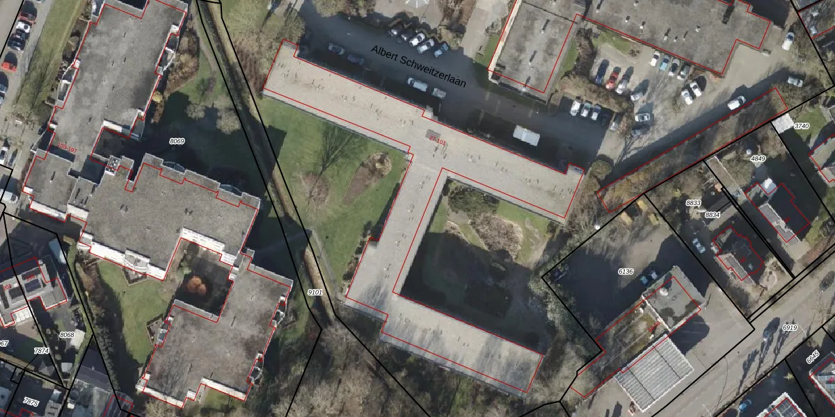Het perceel waarop Albert Schweitzerlaan 65 staat heeft een oppervlakte van 1,9 ha. Dit is een zeer groot perceel. De perceeloppervlakte wordt geregistreerd door het Kadaster. Gedetailleerde informatie over de maten van dit perceel kunt u vinden in het rapport Kadastrale kaart met maatvoering van Albert Schweitzerlaan 65.