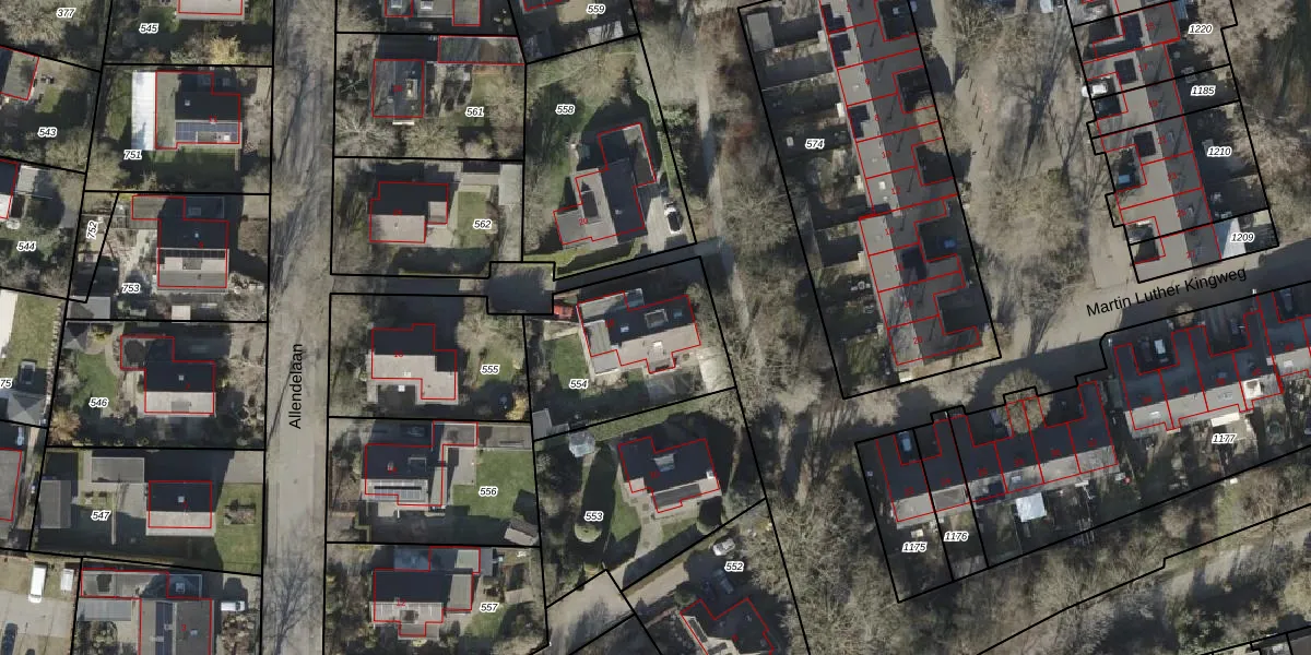 Het perceel waarop Allendelaan 18 staat heeft een oppervlakte van 613 m². Dit is een groot perceel. De perceeloppervlakte wordt geregistreerd door het Kadaster. Gedetailleerde informatie over de maten van dit perceel kunt u vinden in het rapport Kadastrale kaart met maatvoering van Allendelaan 18.