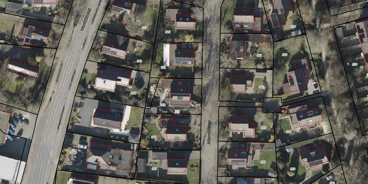 Het perceel waarop Allendelaan 9 staat heeft een oppervlakte van 519 m². Dit is een groot perceel. De perceeloppervlakte wordt geregistreerd door het Kadaster. Gedetailleerde informatie over de maten van dit perceel kunt u vinden in het rapport Kadastrale kaart met maatvoering van Allendelaan 9.