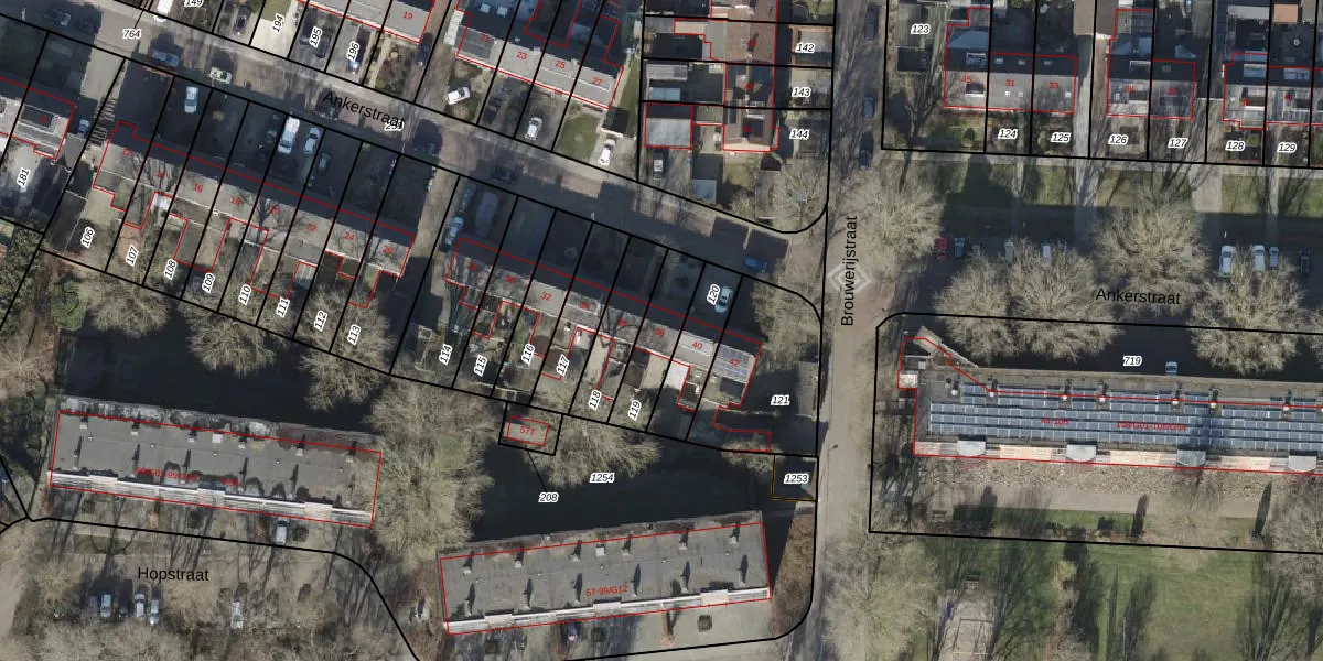 Het perceel waarop Ankerstraat 38 staat heeft een oppervlakte van 166 m². Dit is een middelgroot perceel. De perceeloppervlakte wordt geregistreerd door het Kadaster. Gedetailleerde informatie over de maten van dit perceel kunt u vinden in het rapport Kadastrale kaart met maatvoering van Ankerstraat 38.