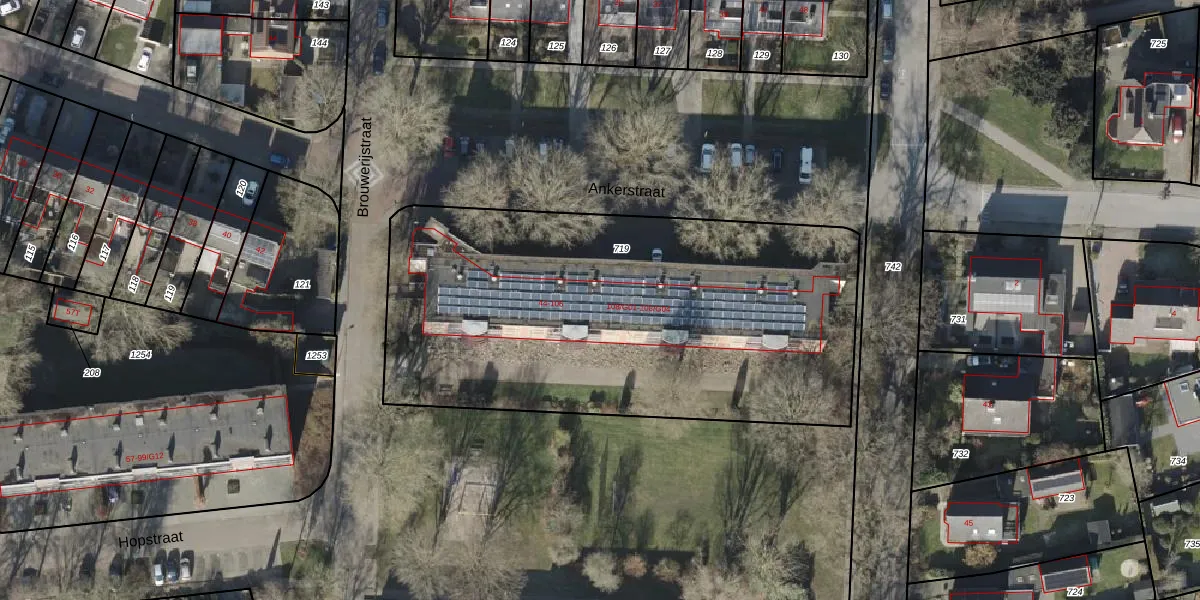 Het perceel waarop Ankerstraat 50 staat heeft een oppervlakte van 2592 m². Dit is een zeer groot perceel. De perceeloppervlakte wordt geregistreerd door het Kadaster. Gedetailleerde informatie over de maten van dit perceel kunt u vinden in het rapport Kadastrale kaart met maatvoering van Ankerstraat 50.